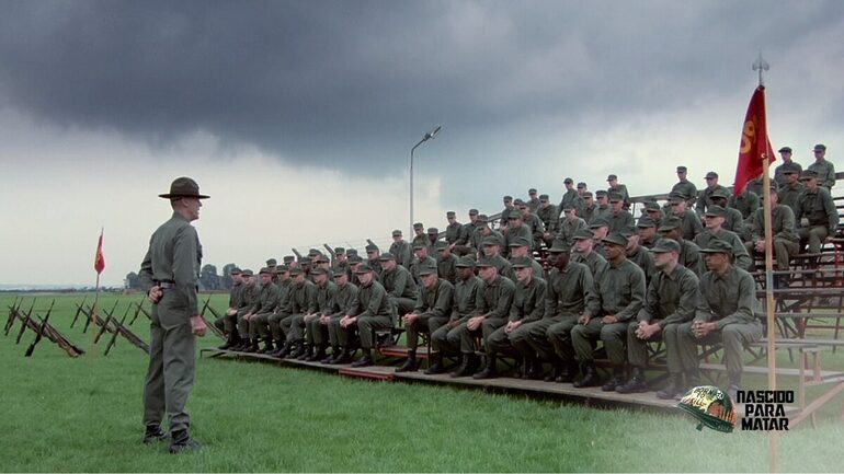 O sargento Hartman domina a primeira fase através de R. Lee Ermey (Seven: Os Sete Crimes Capitais). O ator trabalhava como instrutor real de fuzileiros navais antes das filmagens. Por isso, ele criou quase todos os seus diálogos agressivos durante o trabalho no set. Eventualmente, essa autenticidade trouxe um realismo assustador para as cenas de treinamento. De fato, o clima de tensão sufoca o público em cada segundo.
